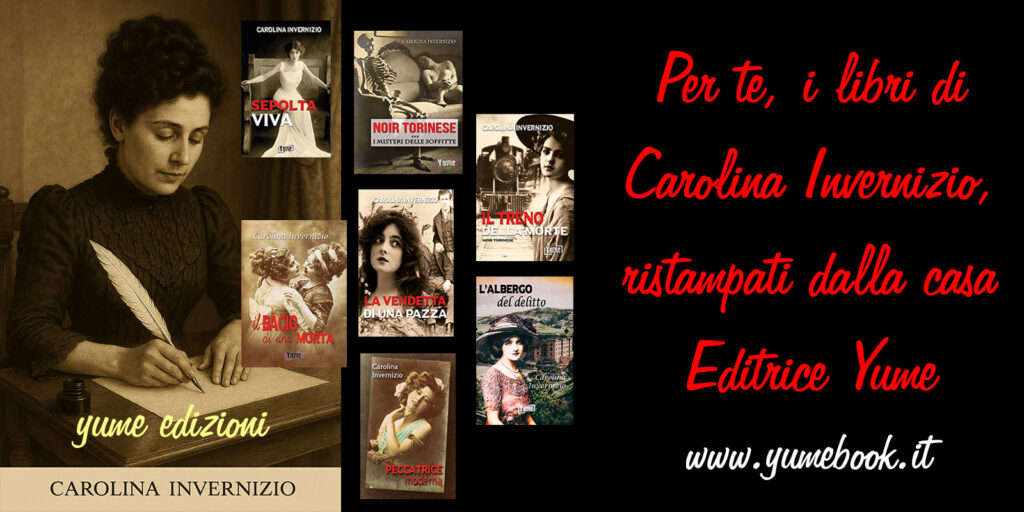 Qualche anno fa la Yume edizioni ha voluto omaggiare una delle più grandi autrici italiane del passato, Carolina Invernizio, per la sua bravura e anche per essere una delle prime gialliste piemontesi, purtroppo poco considerata in quanto donna. Oggi deve essere giustamente rivalutata, sia come autrice instancabile che come donna dalla fantasia incredibile, tanto che le sue trame ricordano quelle delle serie televisive di oggi.